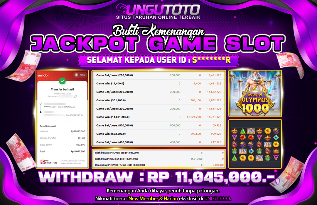 UNGUTOTO JACKPOT GATES OF OLYMPUS 1000 Rp.11.045.000 LUNAS