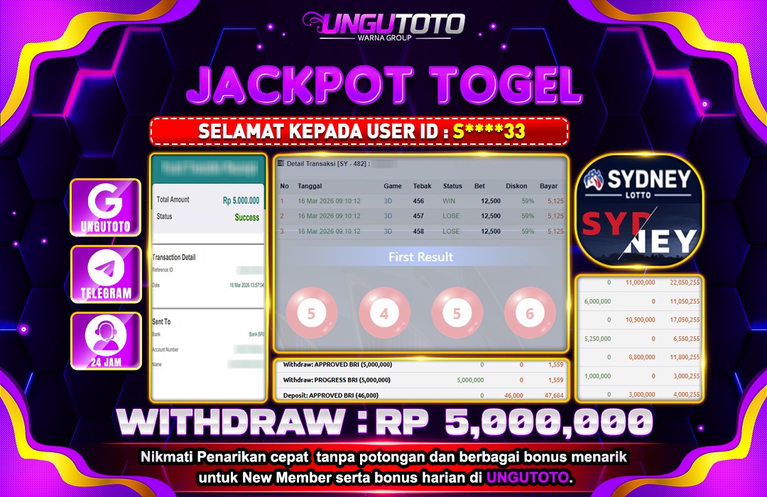 UNGUTOTO JACKPOT TOGEL SYDNEY LOTTO Rp.5.000.000 LUNAS