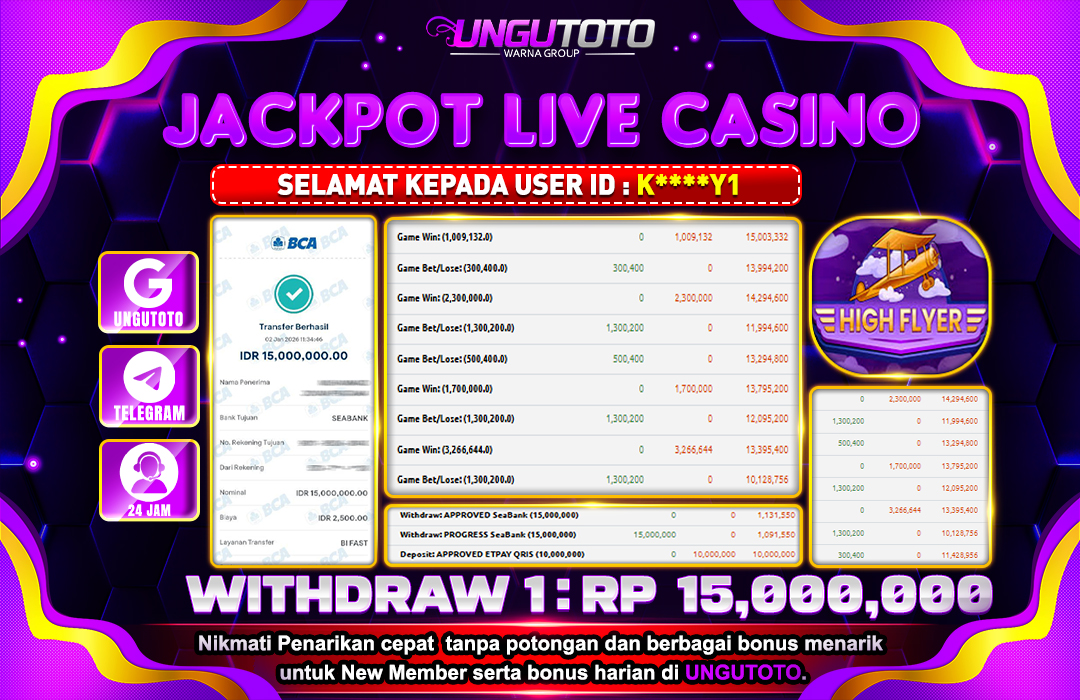 UNGUTOTO JACKPOT PRAGMATIC LIVE CASINO HIGH FLYER Rp.15.000.000 LUNAS
