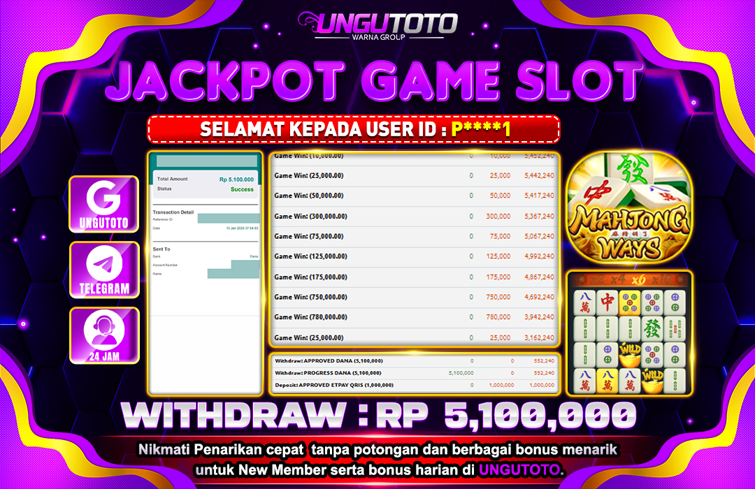 UNGUTOTO JACKPOT SLOT PG SOFT MAHJONG WAYS Rp.5.100.000 LUNAS