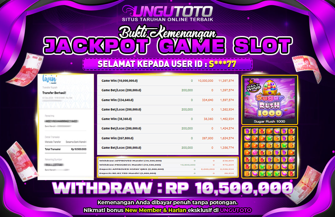 Selamat Kepada Member UNGUTOTO S⭑�***��77 Telah Jackpot Di SUGAR RUSH 1000