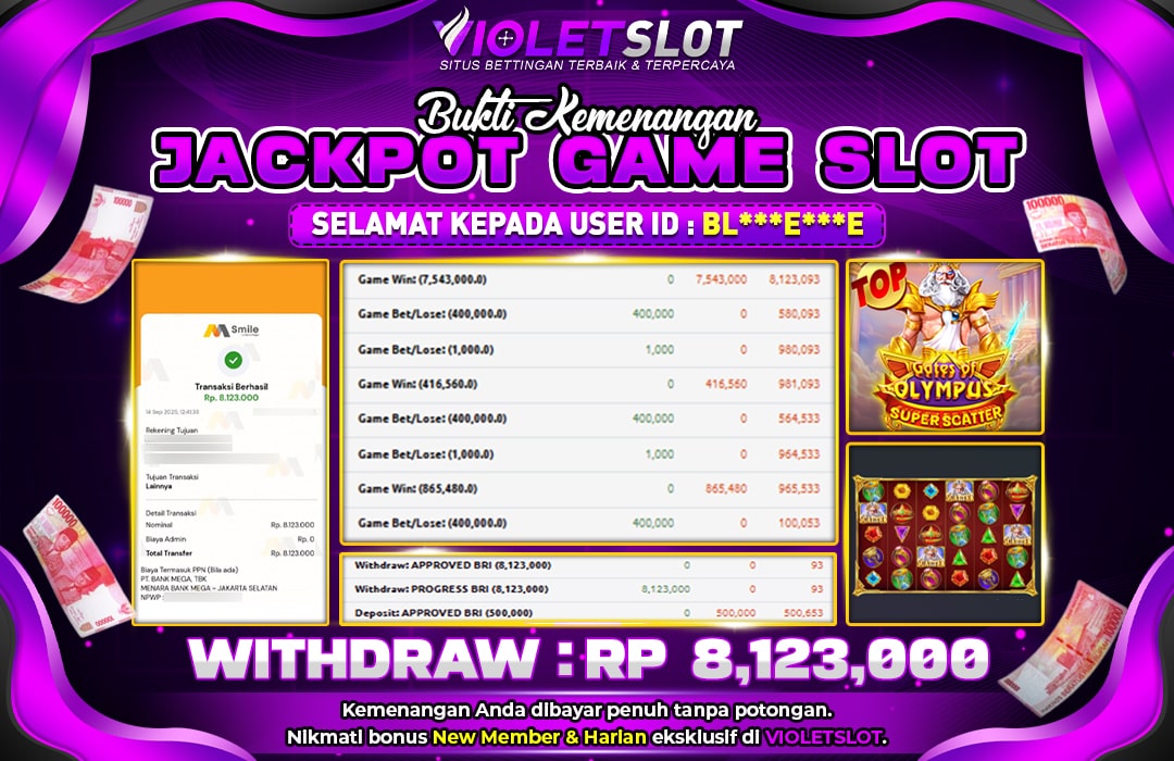 Selamat Kepada Member UNGUTOTO BL*******E Telah Jackpot Di GATES OF OLYMPUS SUPER SCATTER