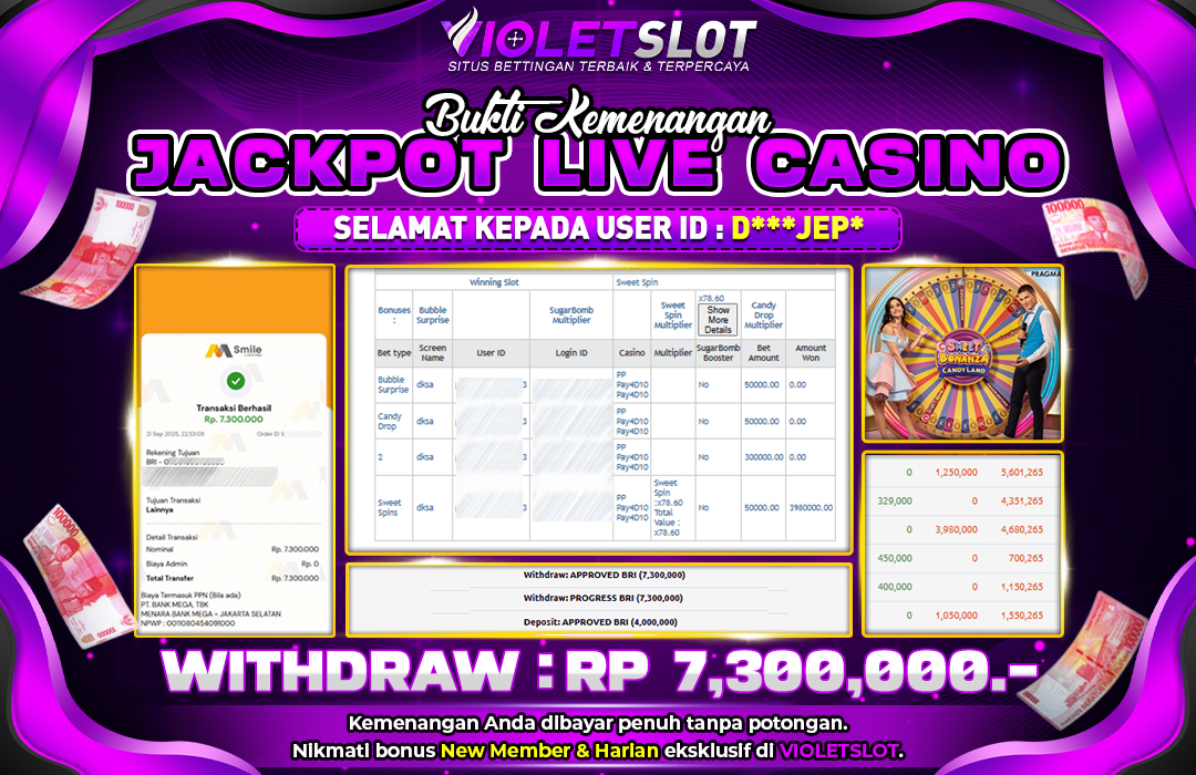 UNGUTOTO JACKPOT LIVE CASINO SWEET CANDY LAND Rp.7.300.000 LUNAS