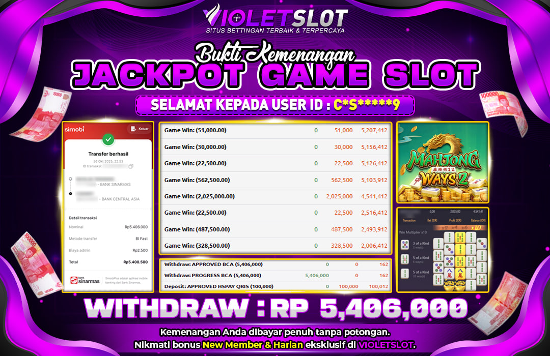 Selamat Kepada Member UNGUTOTO Câ­‘Sâ­‘***â­‘â­‘9 Telah Jackpot Di MAHJONG WAYS 2