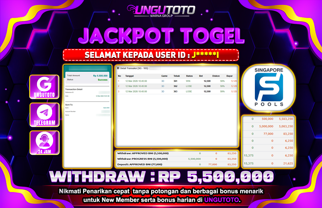 UNGUTOTO JACKPOT SINGAPORE POOLS Rp.5.500.000 LUNAS