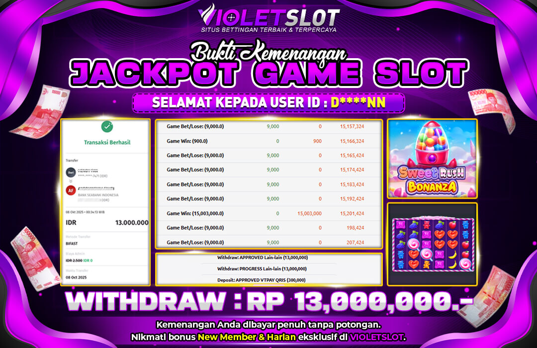 UNGUTOTO JACKPOT SWEET RUSH BONANZA Rp.13.000.000 LUNAS