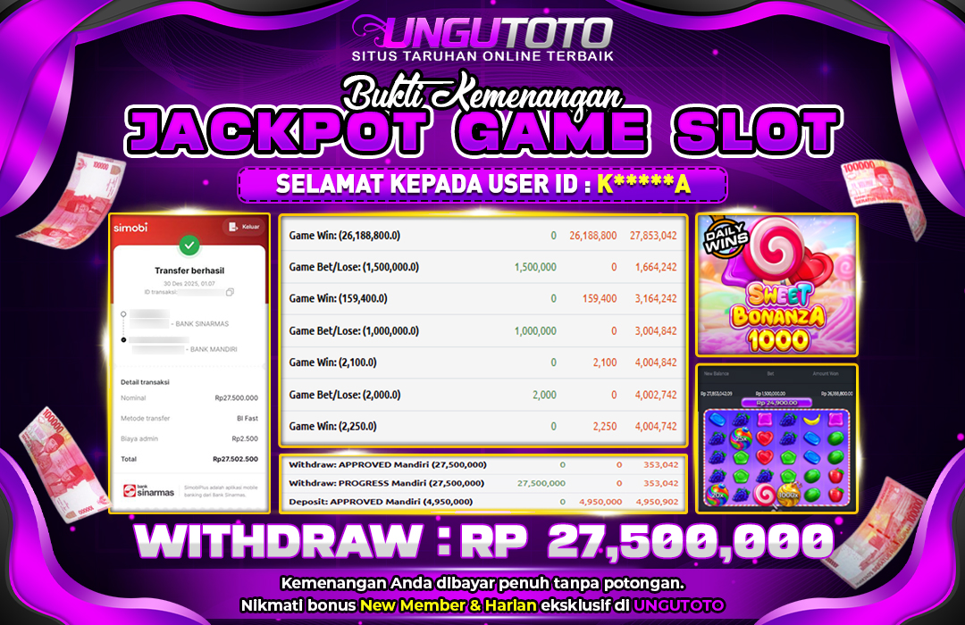 UNGUTOTO JACKPOT Sweet Bonanza 1000 Rp.27.500.000 LUNAS