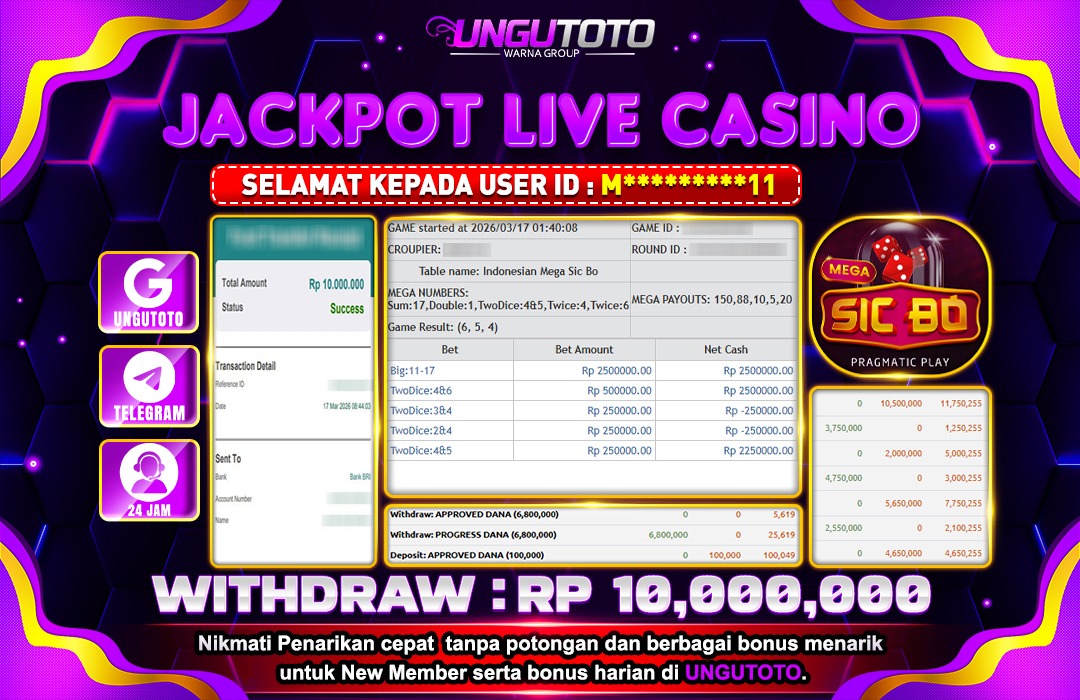 UNGUTOTO JACKPOT LIVE CASINO MEGA SIC BO Rp.10.000.000 LUNAS