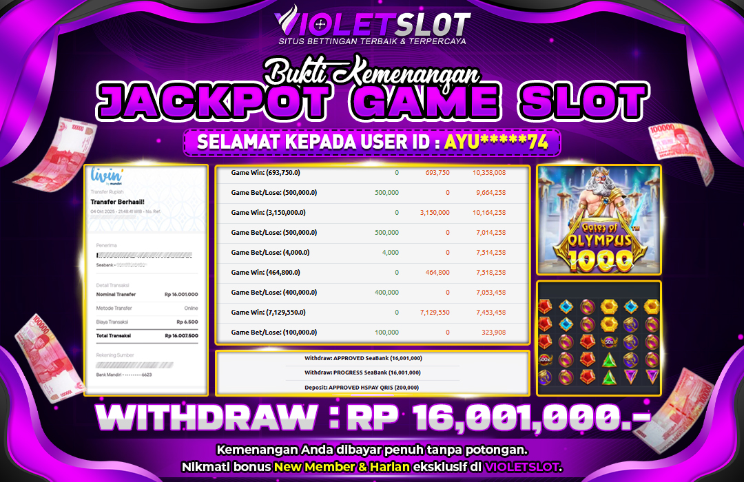 UNGUTOTO JACKPOT GATES OF OLYMPUS 1000 Rp.16.001.000 LUNAS
