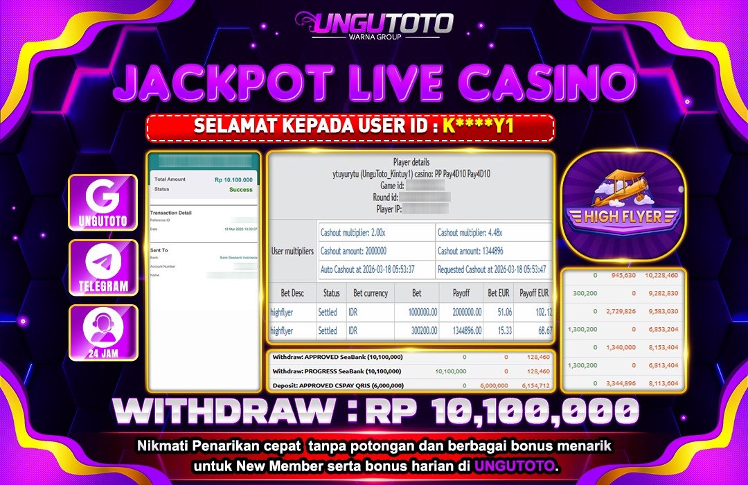 UNGUTOTO JACKPOT PRAGMATIC LIVE CASINO | HIGH FLYER Rp.10.100.000 LUNAS
