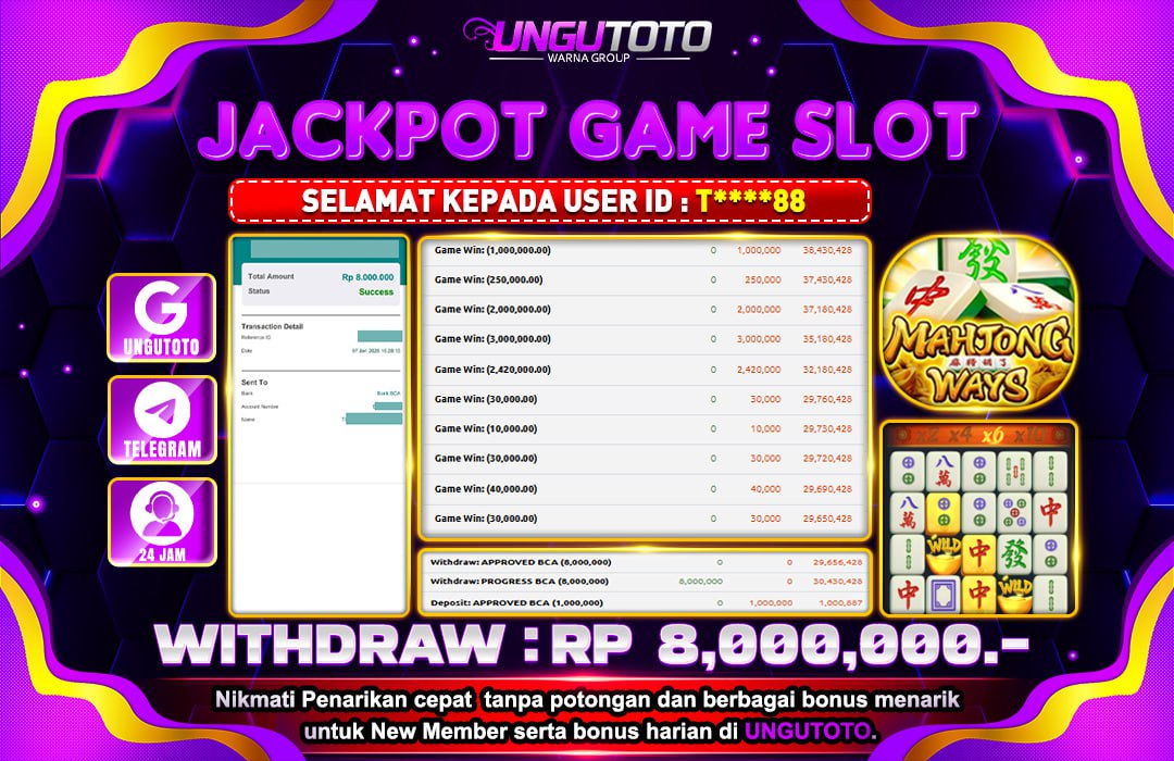 Selamat Kepada Member UNGUTOTO AD**********1 Telah Jackpot Di MAHJONG WAYS 2