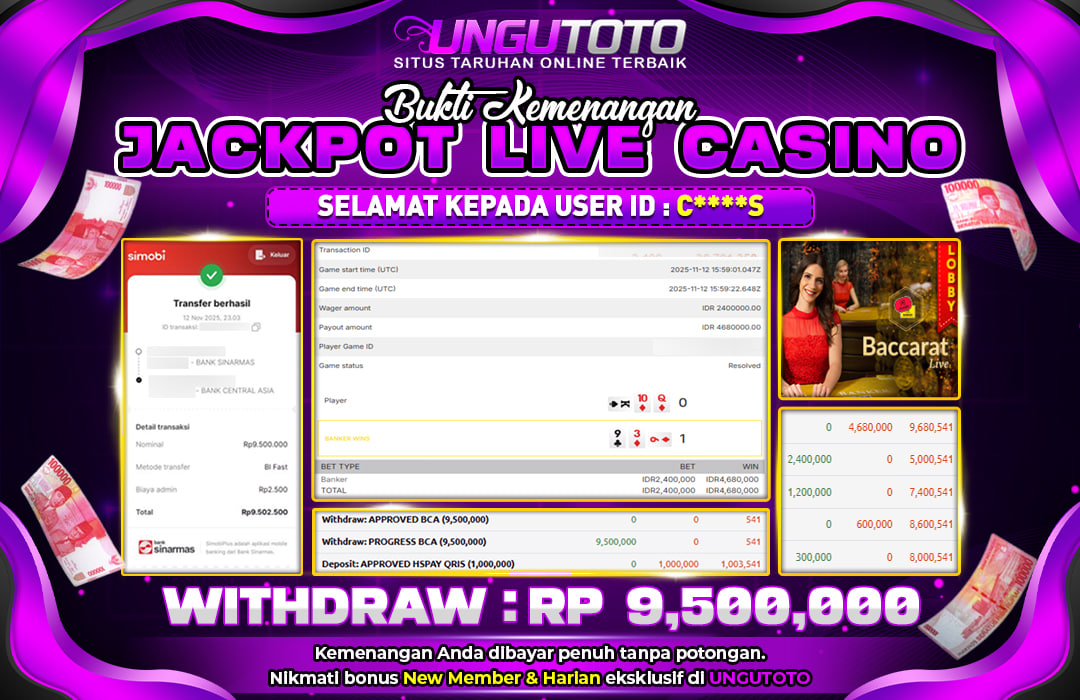 UNGUTOTO JACKPOT BACCARAT Rp.9.500.000 LUNAS