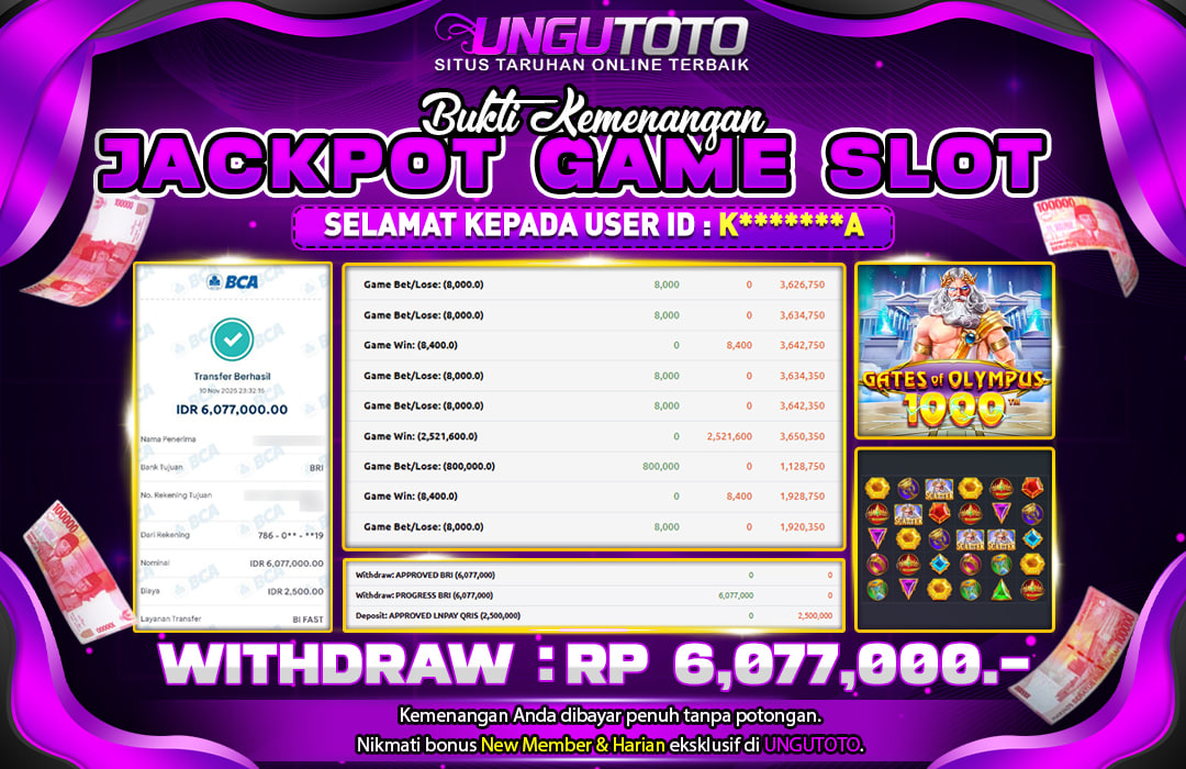 UNGUTOTO JACKPOT GATES OF OLYMPUS 1000 Rp.6.077.000 LUNAS