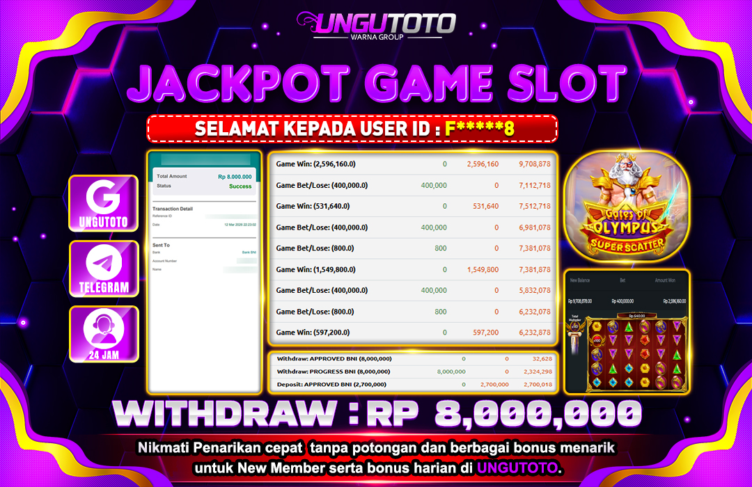 UNGUTOTO JACKPOT GATES OF OLYMPUS SUPER SCATTER Rp.8.000.000 LUNAS