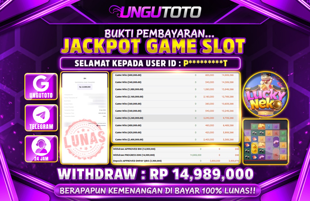 UNGUTOTO JACKPOT LUCKY NEKO Rp.14.989.000 LUNAS
