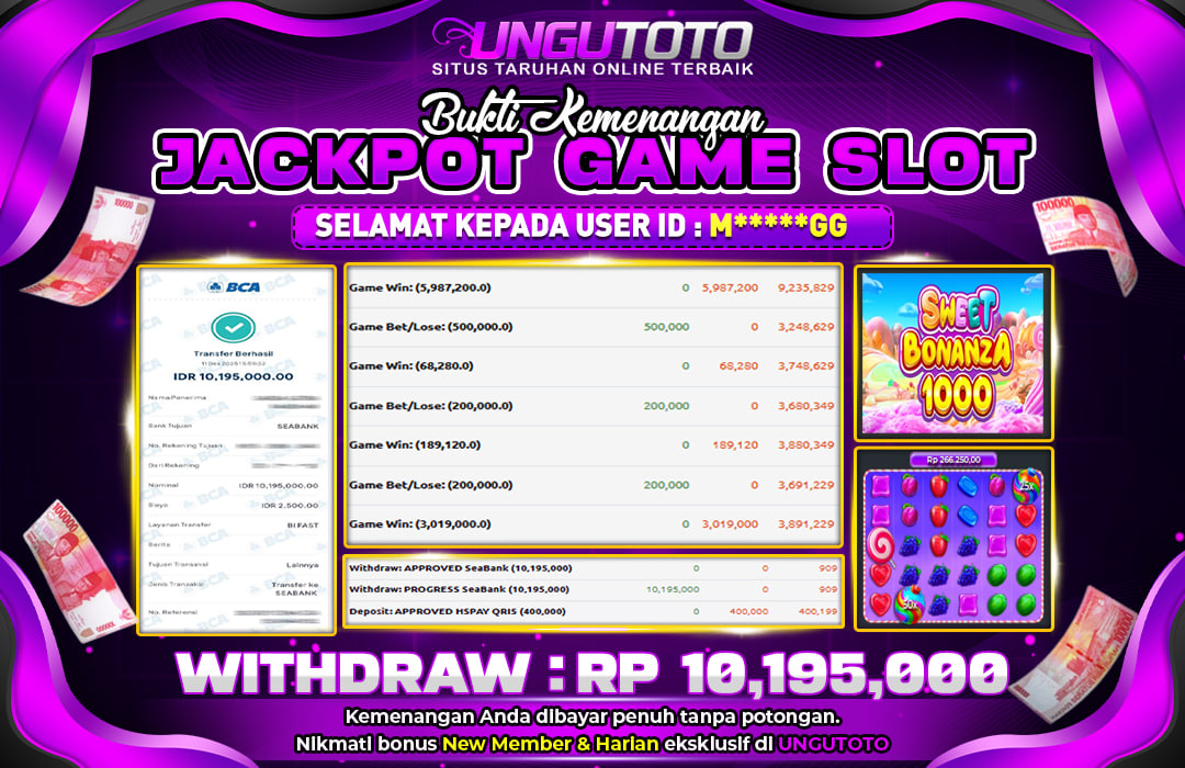 UNGUTOTO JACKPOT SWEET BONANZA 1000 Rp.10.195.000 LUNAS