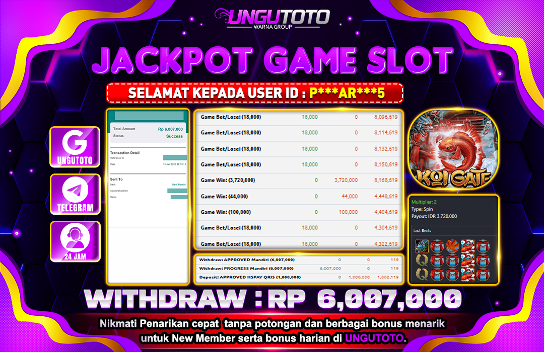 Selamat Kepada Member UNGUTOTO P⭑⭑⭑***��⭑⭑5 Telah Jackpot Di SLOT HABANERO KOI GATE