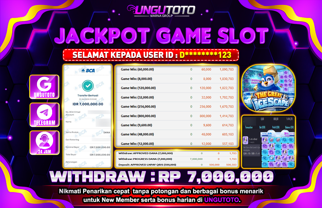 UNGUTOTO JACKPOT THE GREAT ICESCAPE Rp.7.000.000 LUNAS