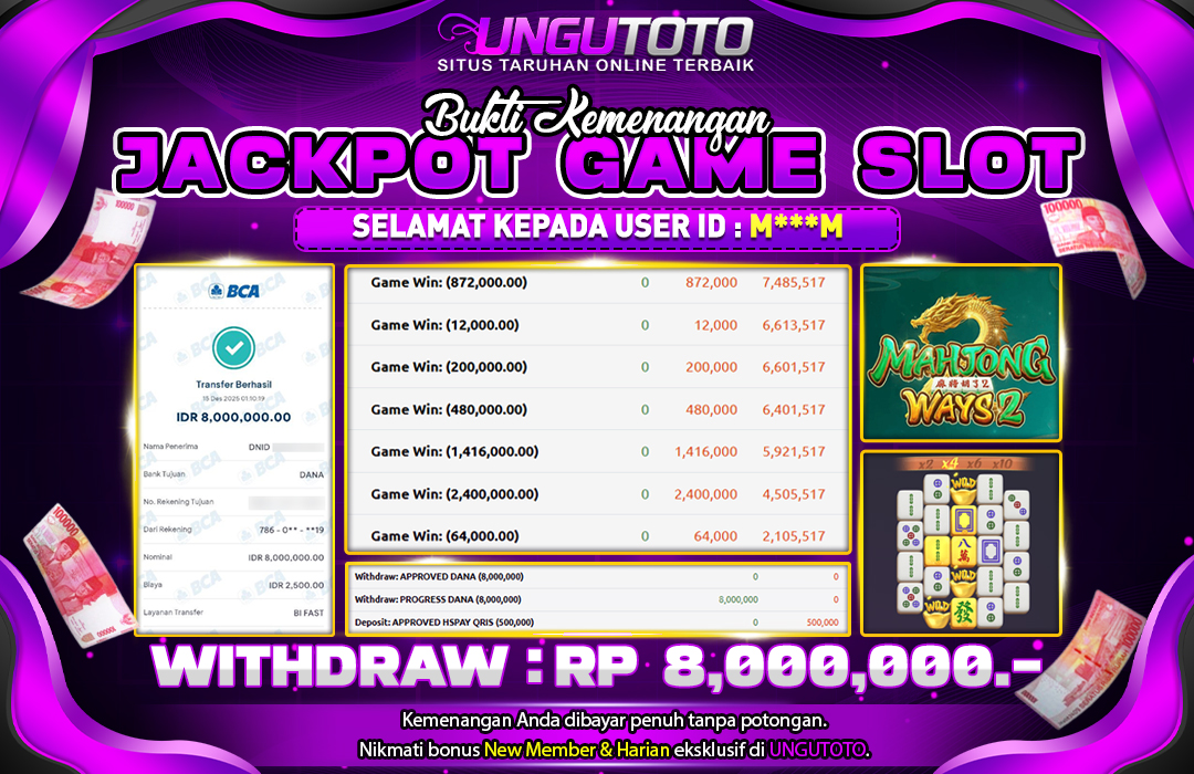 UNGUTOTO JACKPOT MAHJONG WAYS 2 Rp.8.000.000 LUNAS