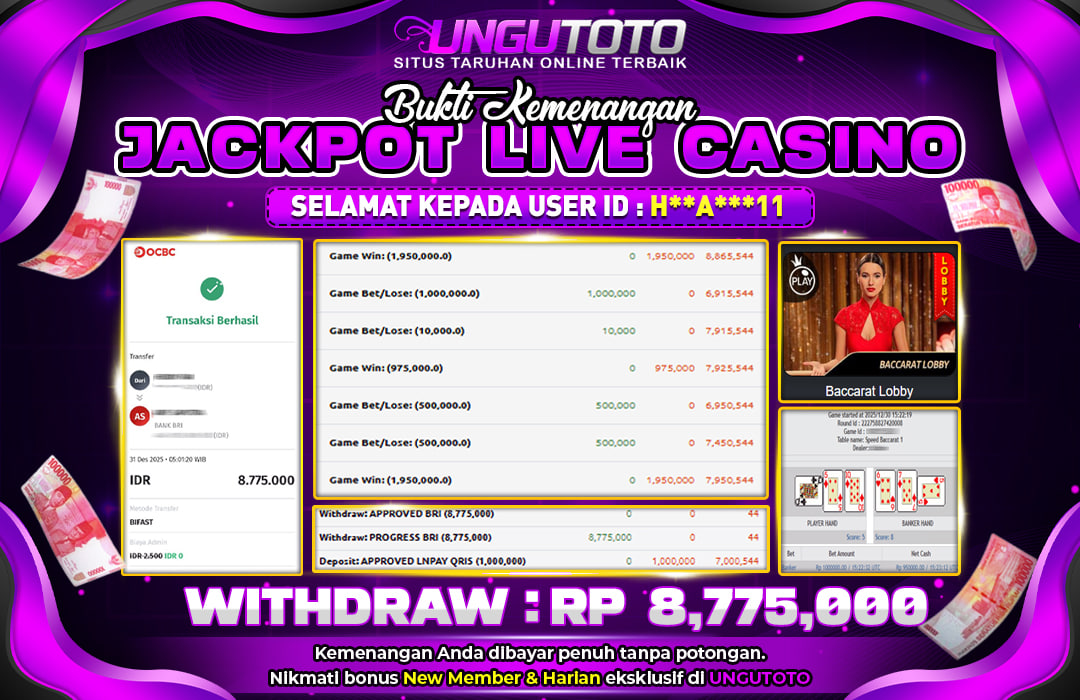 UNGUTOTO JACKPOT BACCARAT LOBBY Rp.8.775.000 LUNAS