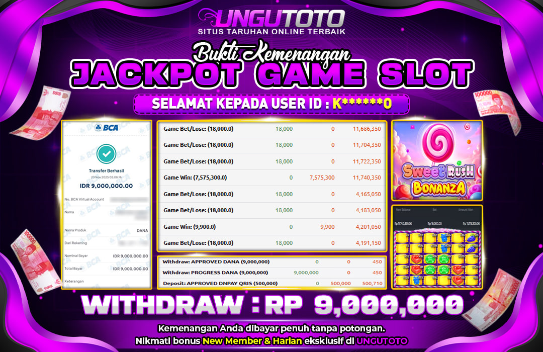 UNGUTOTO JACKPOT SWEET RUSH BONANZA Rp.9.000.000 LUNAS