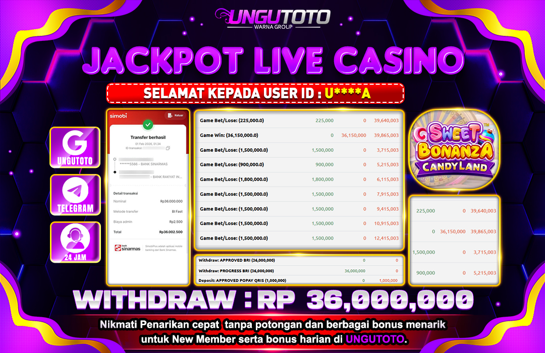 UNGUTOTO JACKPOT SWEET BONANZA CANDYLAND Rp.36.000.000 LUNAS