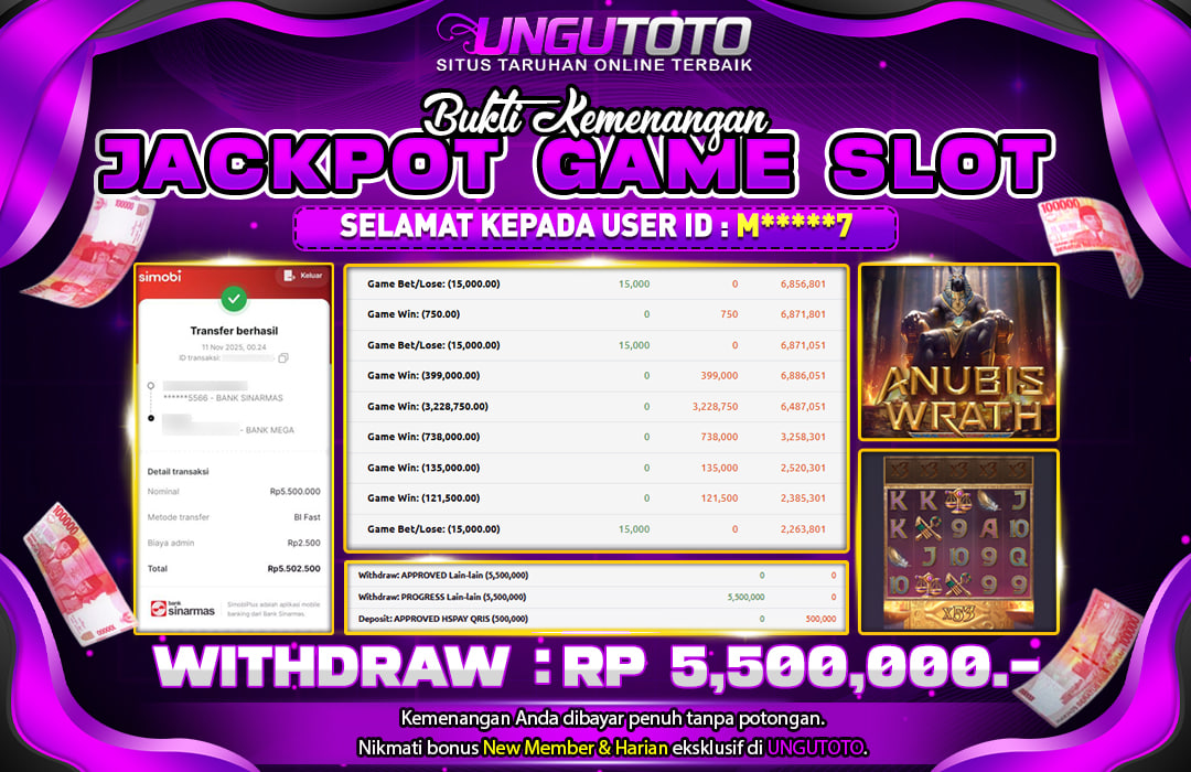 UNGUTOTO JACKPOT ANUBIS WRATH Rp.5.500.000 LUNAS