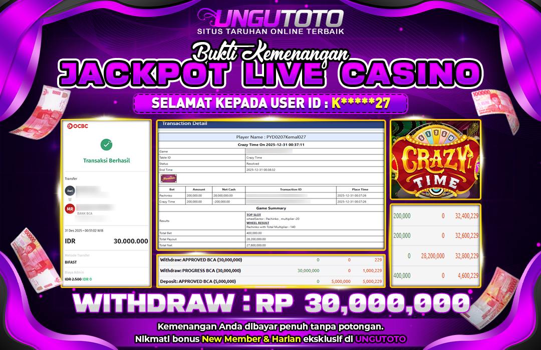 UNGUTOTO JACKPOT CRAZY TIME Rp.30.000.000 LUNAS