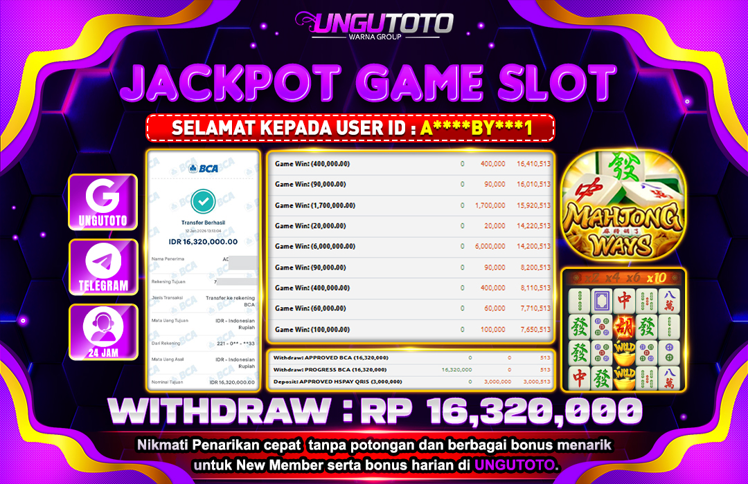 Selamat Kepada Member UNGUTOTO B******9 Telah Jackpot Di MAHJONG WAYS