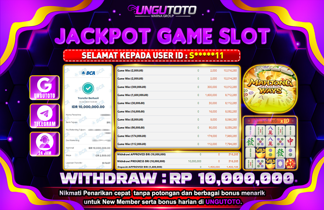 Selamat Kepada Member UNGUTOTO P⭑⭑⭑***�⭑⭑H Telah Jackpot Di MAHJONG WAYS 2