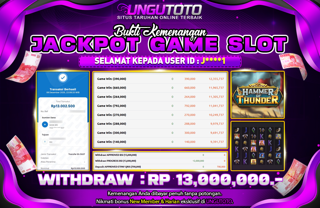 UNGUTOTO JACKPOT HAMMER OF THUNDER Rp.13.000.000 LUNAS