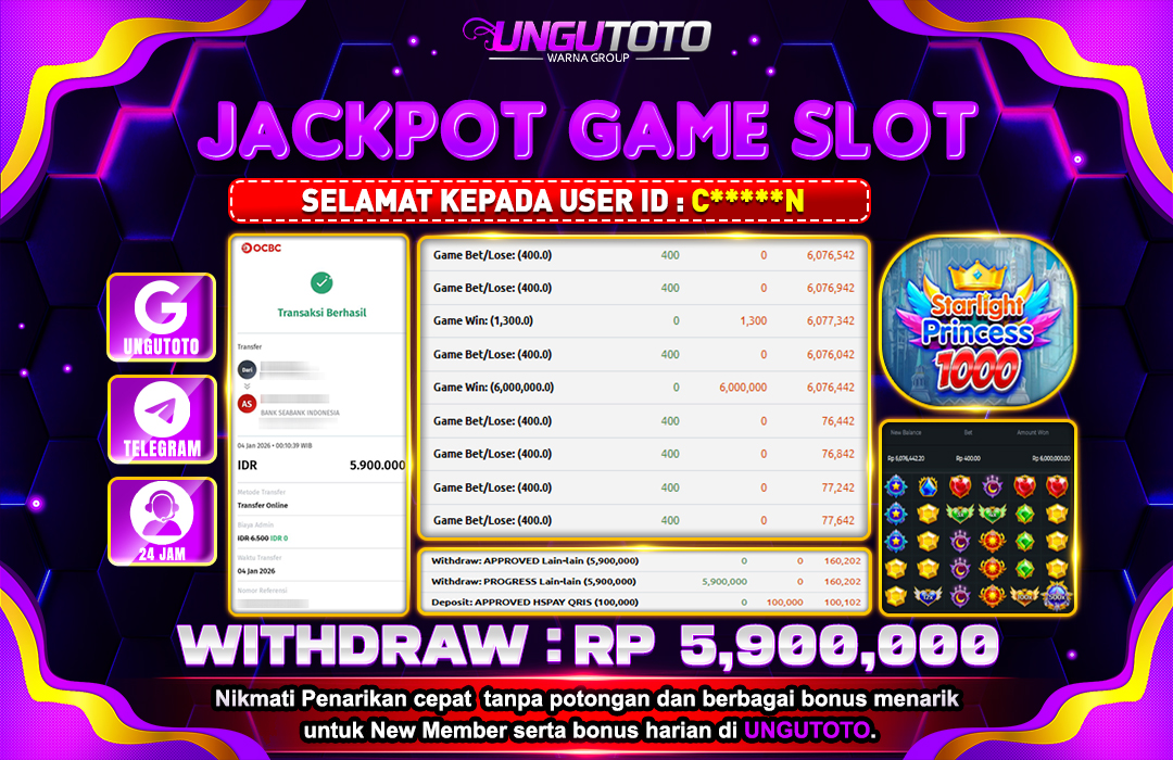 Selamat Kepada Member UNGUTOTO C******N Telah Jackpot Di STARLIGHT PRINCESS 1000