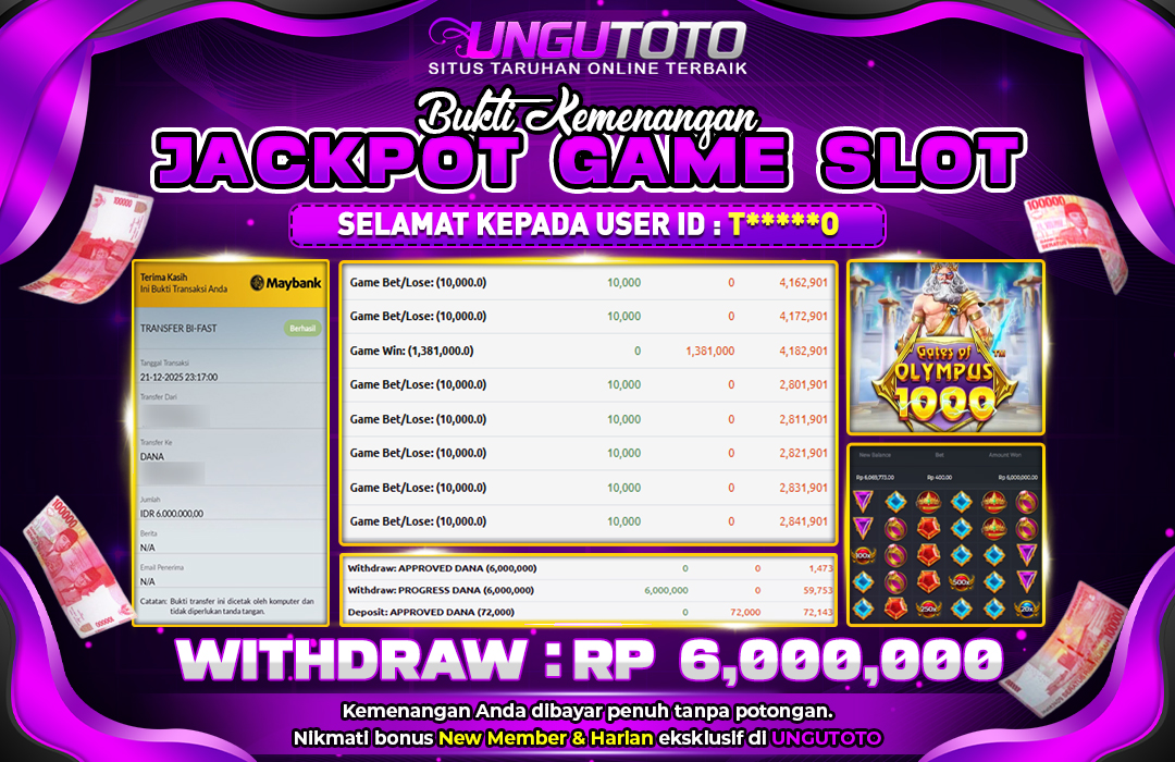 UNGUTOTO JACKPOT GATES OF OLYMPUS 1000 Rp.6.000.000 LUNAS