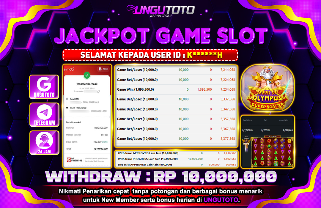 UNGUTOTO JACKPOT PRAGMATIC PLAY GATES OF OLYMPUS 1000 Rp.10.000.000 LUNAS