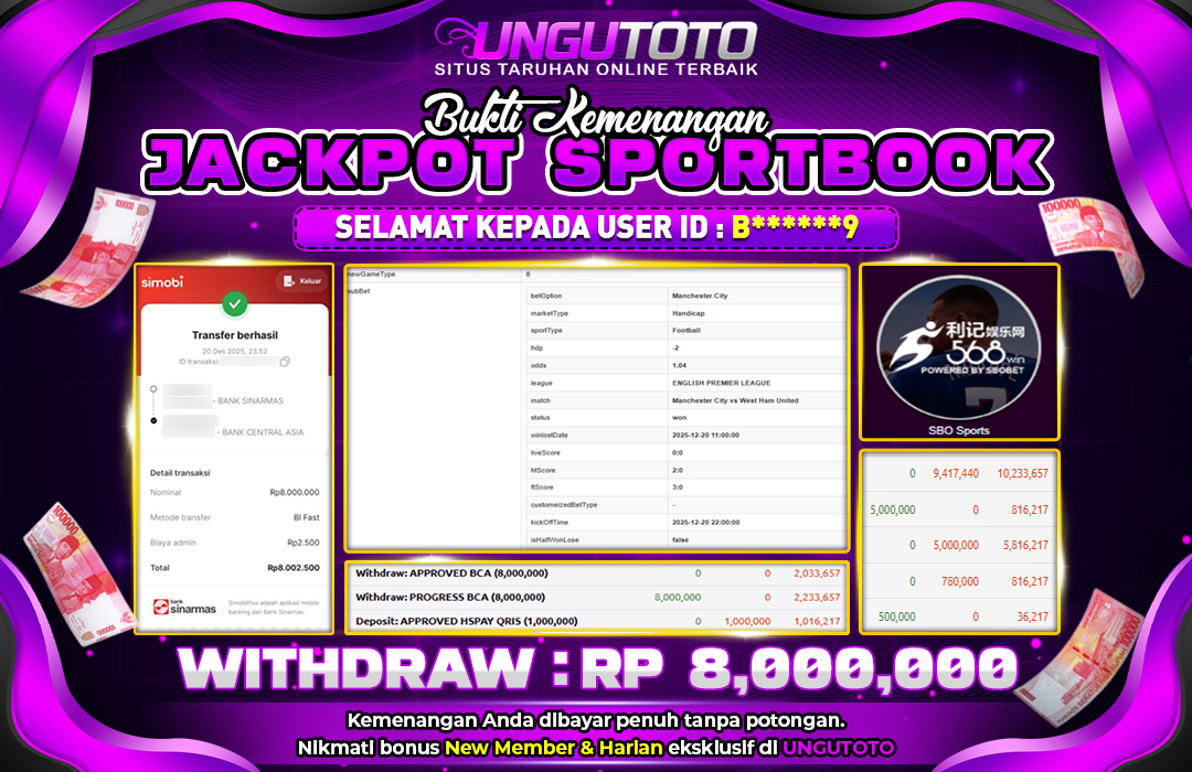 UNGUTOTO JACKPOT SBO SPORT Rp.8.000.000 LUNAS