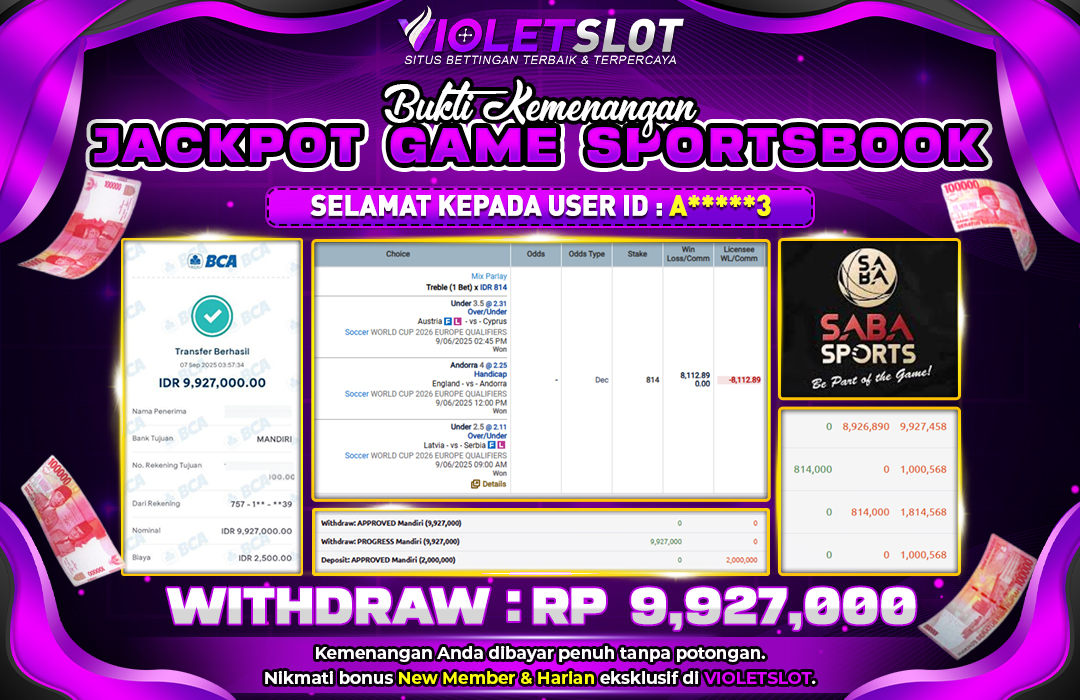 Selamat Kepada Member UNGUTOTO A****3 Telah Jackpot Di SABA SPORTS