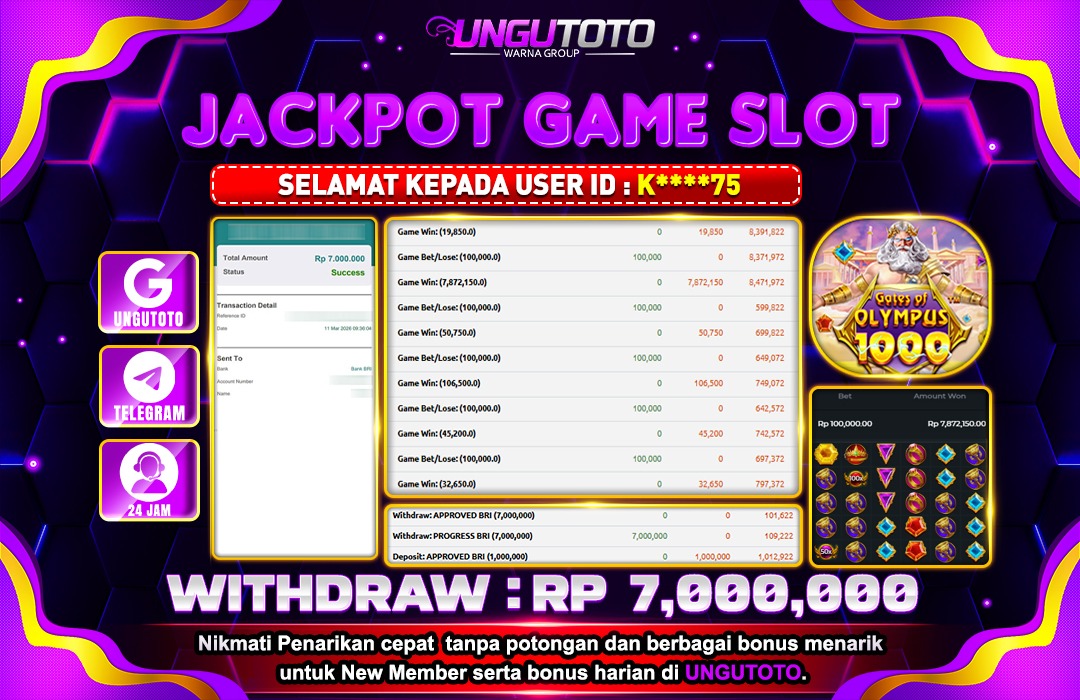 UNGUTOTO JACKPOT GATES OF OLYMPUS 1000 Rp.7.000.000 LUNAS