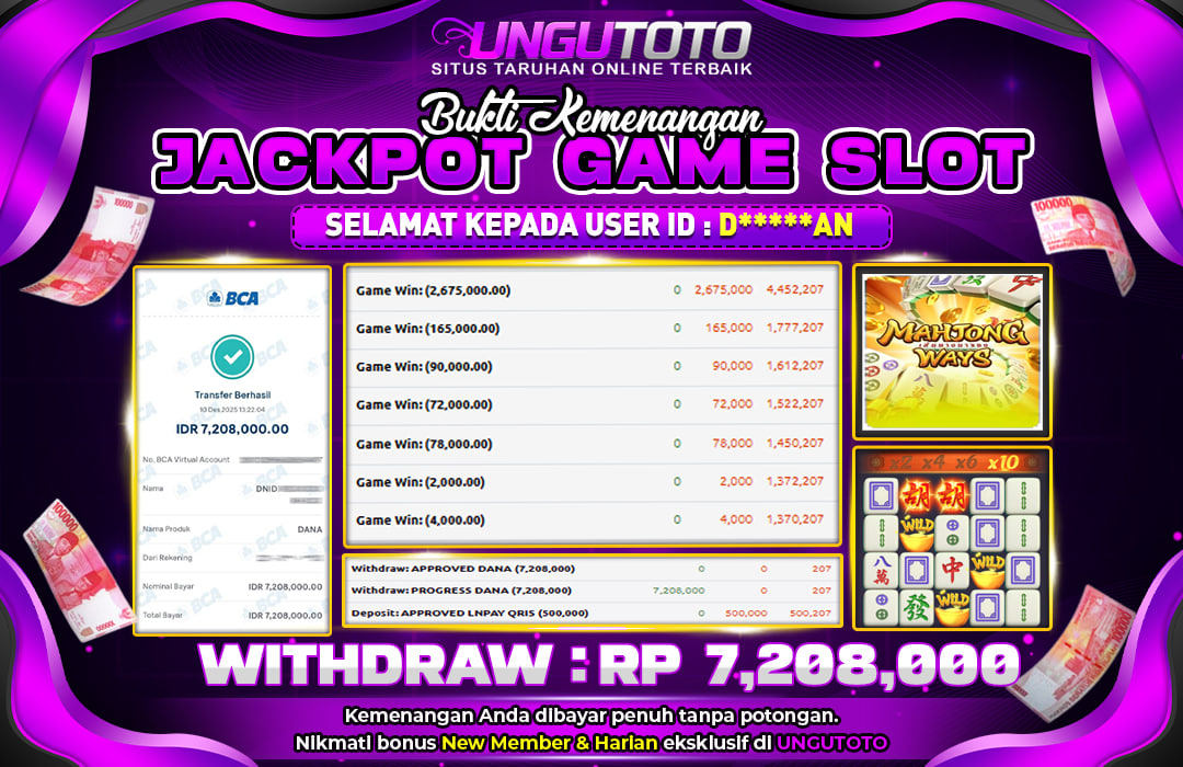 UNGUTOTO JACKPOT MAHJONG WAYS Rp.7.208.000 LUNAS