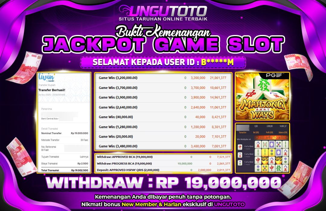 UNGUTOTO JACKPOT MAHJONG WAYS Rp.19.000.000 LUNAS