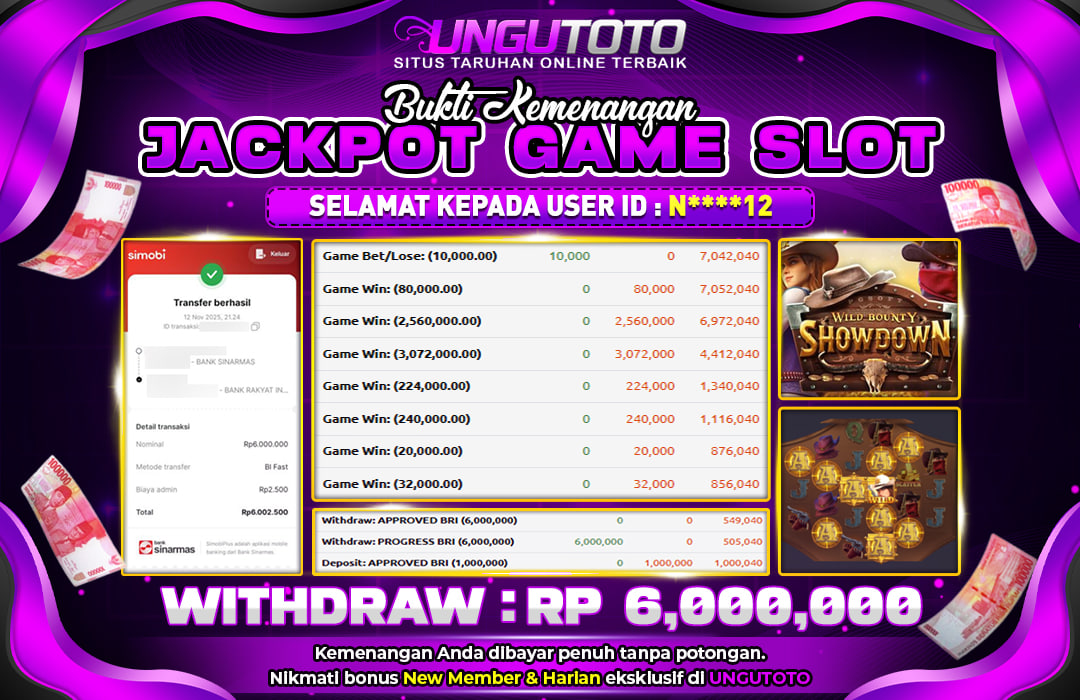 UNGUTOTO JACKPOT WILD BOUNTY SHOWDOWN Rp.6.000.000 LUNAS