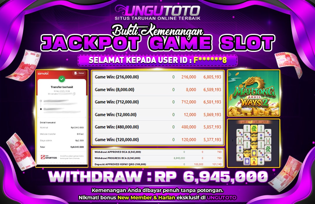 Selamat Kepada Member UNGUTOTO F******8 Telah Jackpot Di MAHJONG WAYS 2