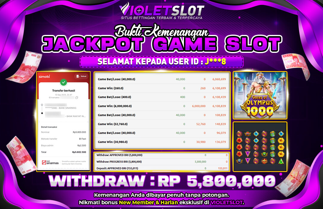 Selamat Kepada Member UNGUTOTO J****8 Telah Jackpot Di GATES OF OLYMPUS 1000
