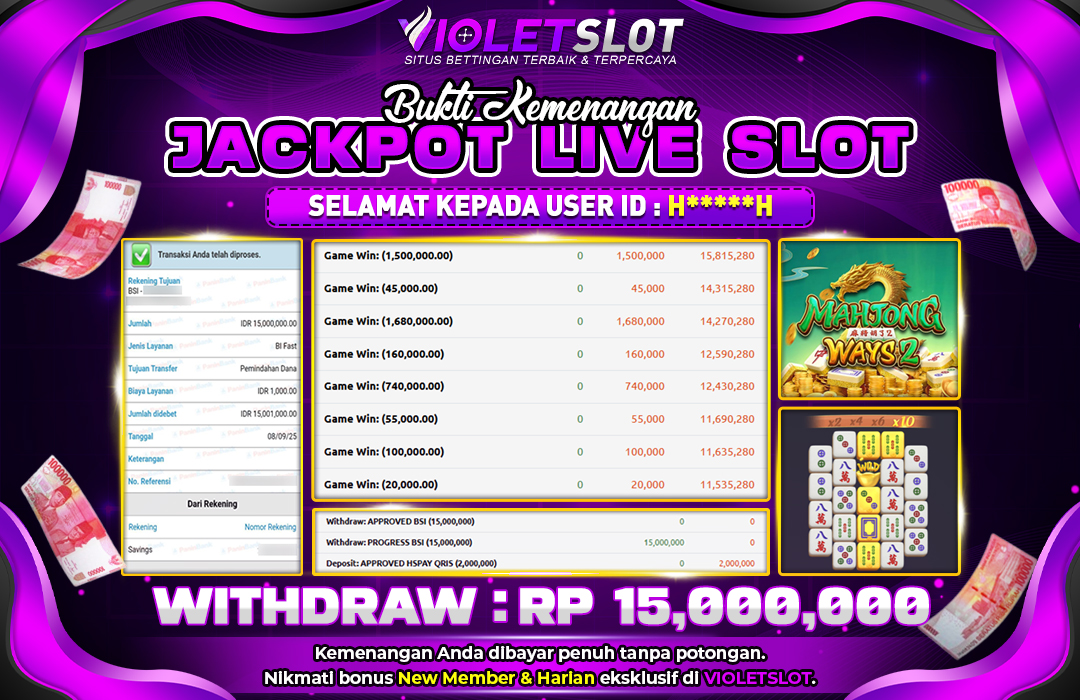 Selamat Kepada Member UNGUTOTO H****H Telah Jackpot Di MAHJONG WAYS 2