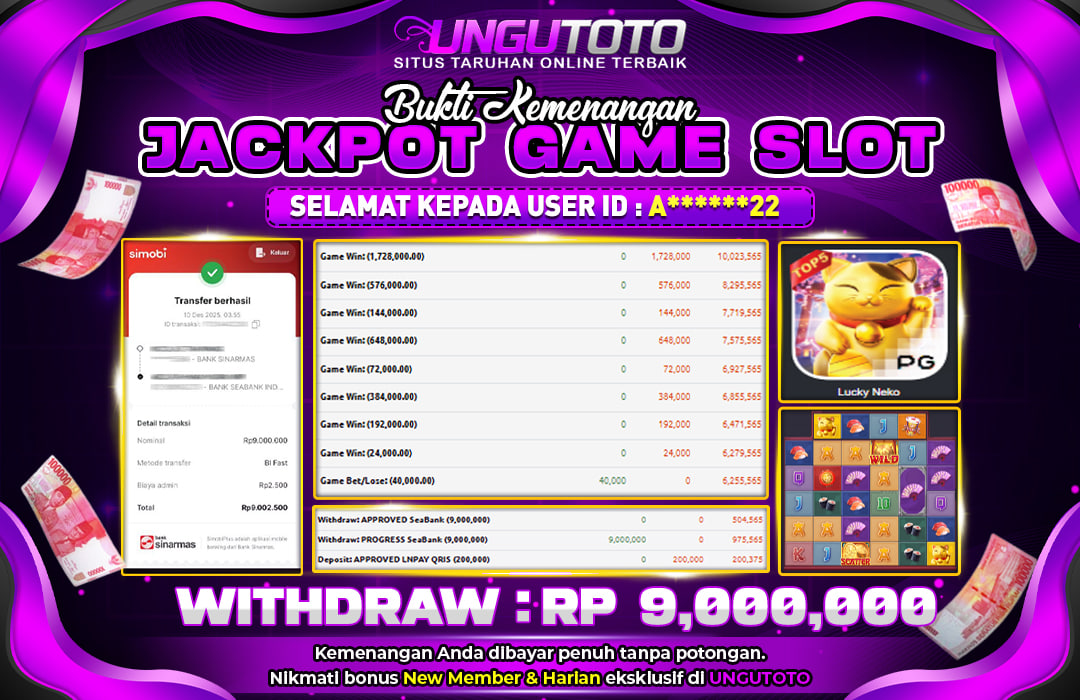 UNGUTOTO JACKPOT LUCKY NEKO Rp.9.000.000 LUNAS