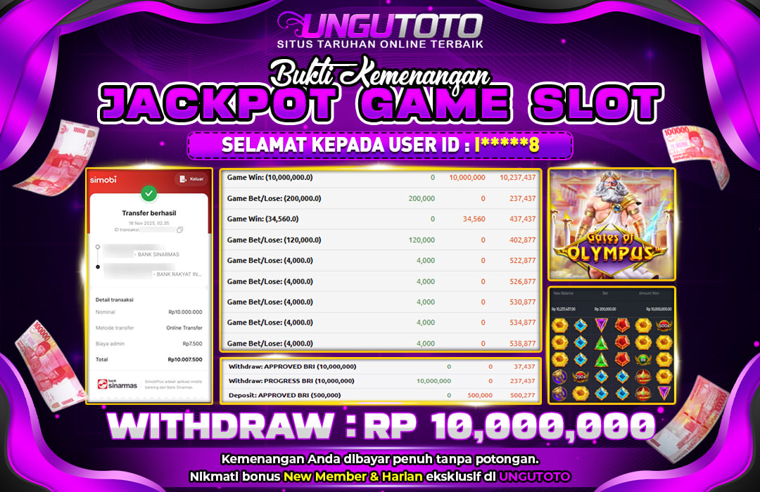 UNGUTOTO JACKPOT GATES OF OLYMPUS Rp.10.000.000 LUNAS