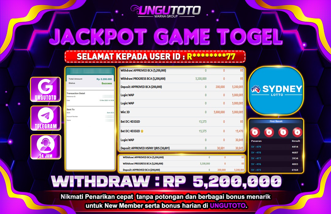 Selamat Kepada Member UNGUTOTO R********77 Telah Jackpot Di TOGEL SYDNEY