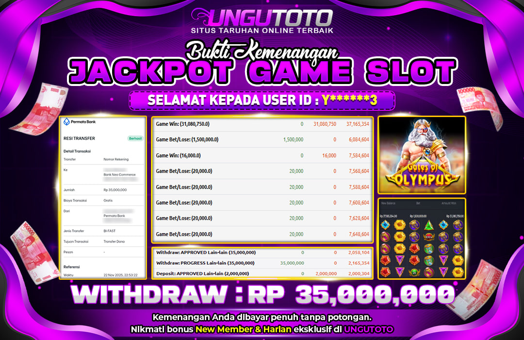 UNGUTOTO JACKPOT GATES OF OLYMPUS Rp.35.000.000 LUNAS