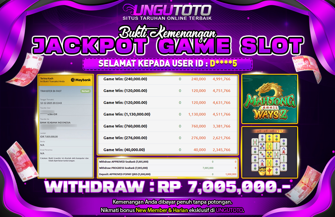 UNGUTOTO JACKPOT MAHJONG WAYS Rp.7.000.000 LUNAS
