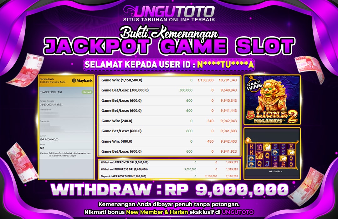UNGUTOTO JACKPOT 5 LIONS 2 Rp.9.000.000 LUNAS