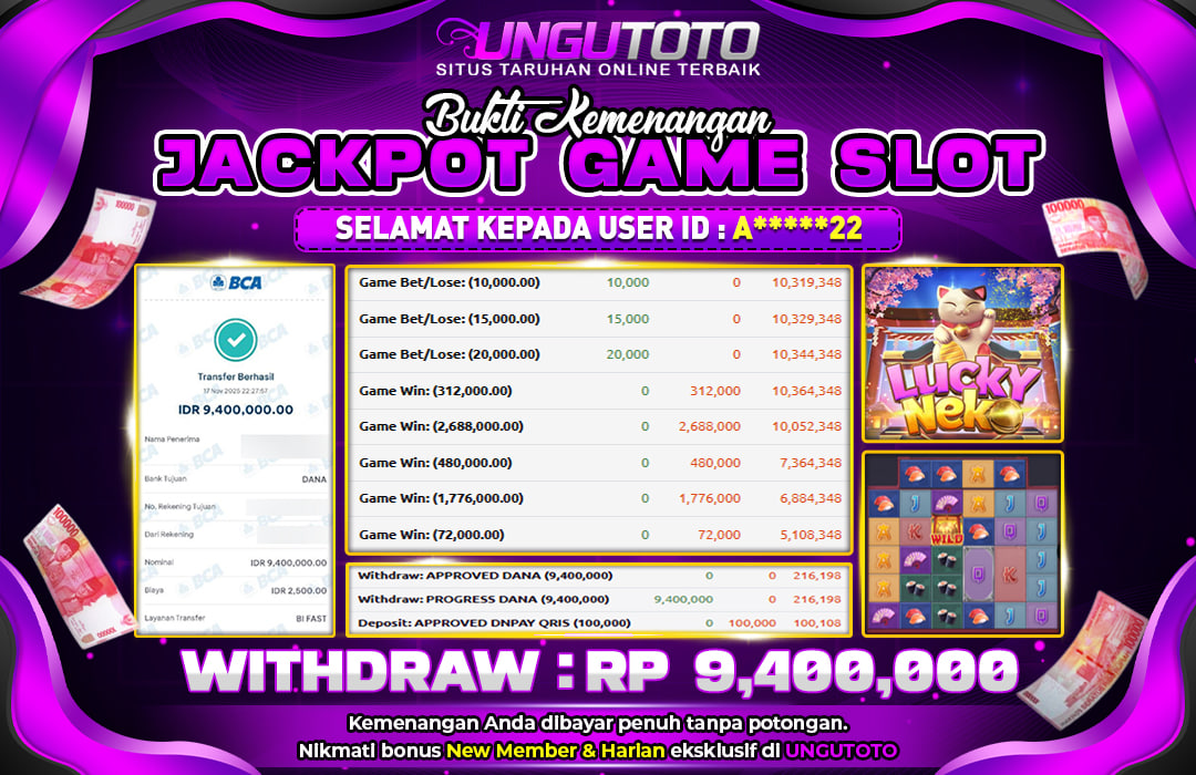 UNGUTOTO JACKPOT LUCKY NEKO Rp.9.400.000 LUNAS